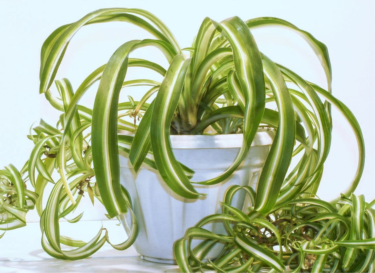 Popularna zielistka zazwyczaj rośnie w zwartych kępach i wyróżnia się długimi, podłużnymi liśćmi łukowo wygiętymi, dzięki czemu nadają roślinie lekko wiszący wygląd. Najczęściej są one jasnozielone, z kremowymi lub białymi paskami na środku albo przy krawędziach, w zależności od odmiany.