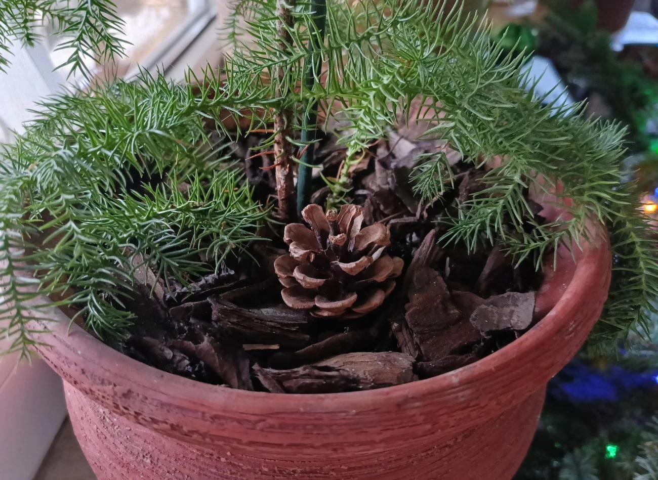 Trik z szyszką w doniczce naprawdę ułatwia codzienną, zimową pielęgnację kwiatów. Jak rozpoznać, że przyszedł czas na podlanie danego okazu? Włóż szyszkę sosnową do doniczki, po prostu połóż ją na podłożu jak zwykłą dekorację (jeśli jest ono dodatkowo okryte ściółką, delikatnie ją rozgarnij, by ogonek szyszki dotykał ziemi) i obserwuj jej reakcje na panujące warunki. Jeśli zaobserwujesz: