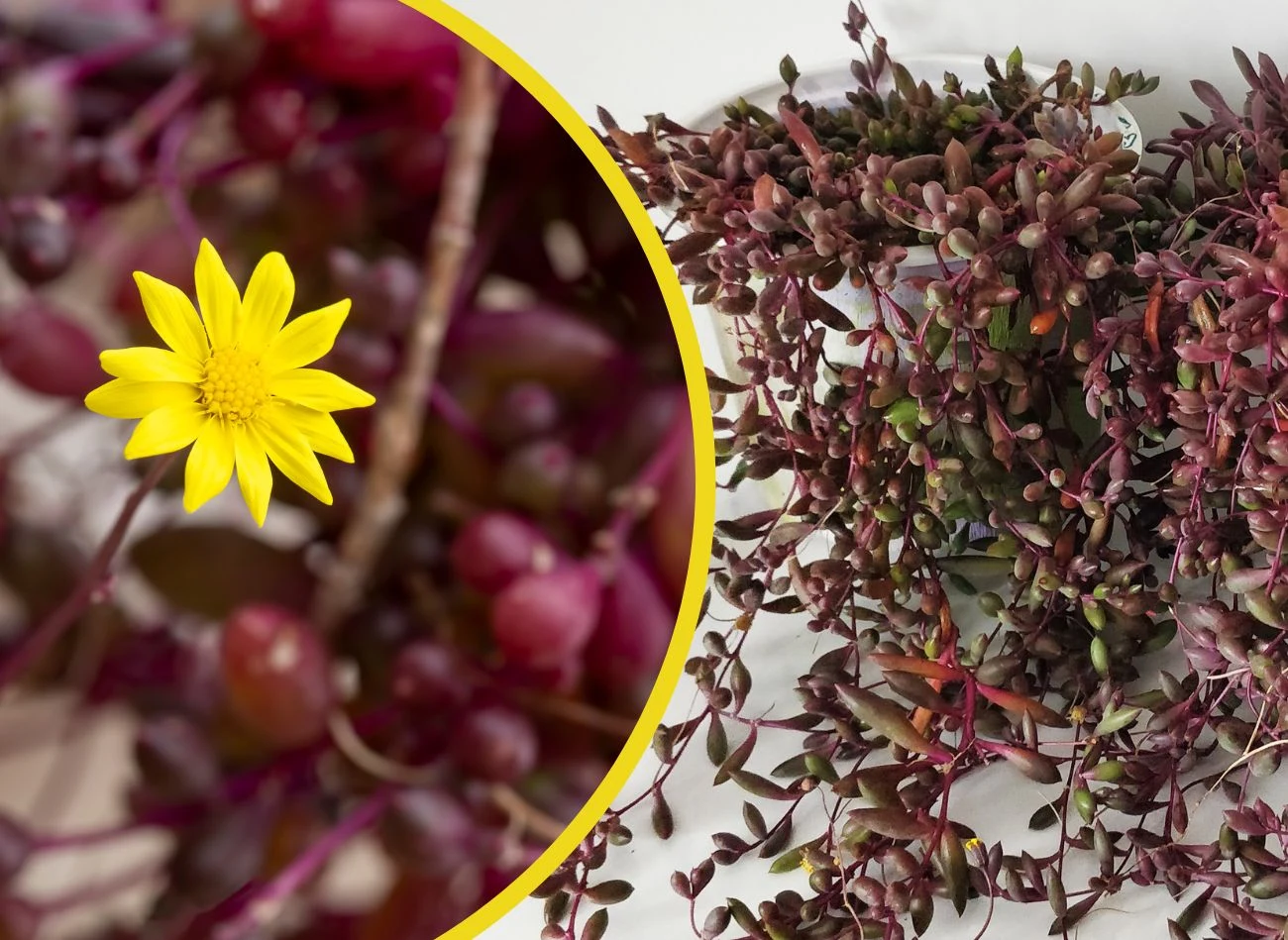 Nie masz jej jeszcze w swojej kolekcji? Najwyższa pora to zmienić. Senecio ' Purple Flash' nie zajmuje wiele miejsca, toleruje suszę i dobrze rozwija się w doniczkach. Łatwo ją rozmnożyć, a gdy zapewnisz jej dostatecznie dużo światła słonecznego, będzie cieszyć oko drobnymi kwiatkami o imponującym, żółtym wybarwieniu, połyskującymi na tle rubinowych sznurów.