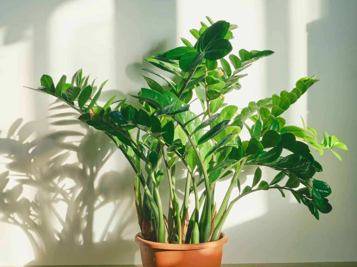 Zamiokulkas będzie cieszył oko bujnym wzrostem i zdrowymi, soczyście zielonymi liśćmi. Wystarczy zapewnić mu dostęp do niezbędnych składników odżywczych.