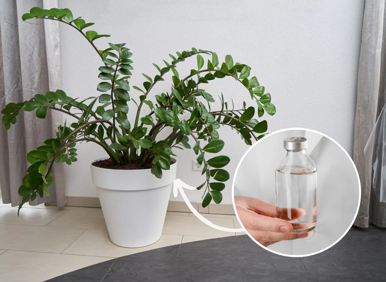 Aby wzmocnić roślinę, możemy podlewać zamiokulkasa pod korzeń roztworem amoniaku aptecznego (10 proc.) rozcieńczonym w jednym litrze wody. Preparat warto wzmocnić dodatkowo odrobiną kwasu cytrynowego, który należy wysypać na czubek łyżeczki, aby poprawić korzystne właściwości mieszanki.