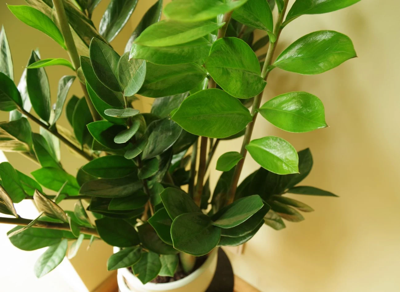 Pamiętajmy też o tym, że zamiokulkas jest rośliną ciepłolubną, więc nie może być narażany na zimne przeciągi. Nie trzymajmy go w pobliżu często uchylanego okna lub drzwi. Unikajmy też stawiania donicy blisko źródła ciepła – rozgrzanego kaloryfera lub kominka.