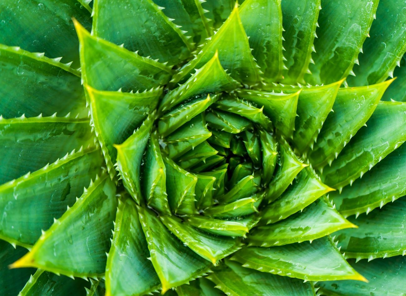 Spiralnie ułożone rzędy liści aloesu wąskolistnego tworzą niezwykle efektowną, geometryczną rozetę. Fot. Powerofflowers/CanvaPro