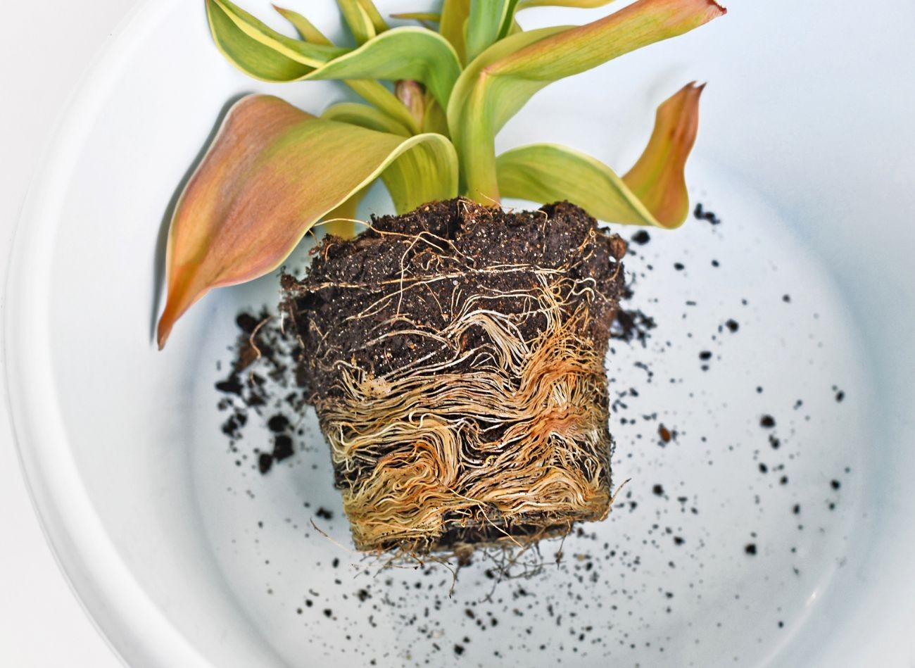 Po wyjęciu rośliny ze starej doniczki warto oczyścić jej korzenie z resztek starego podłoża, a także je rozplątać. Fot. firn/CanvaPro