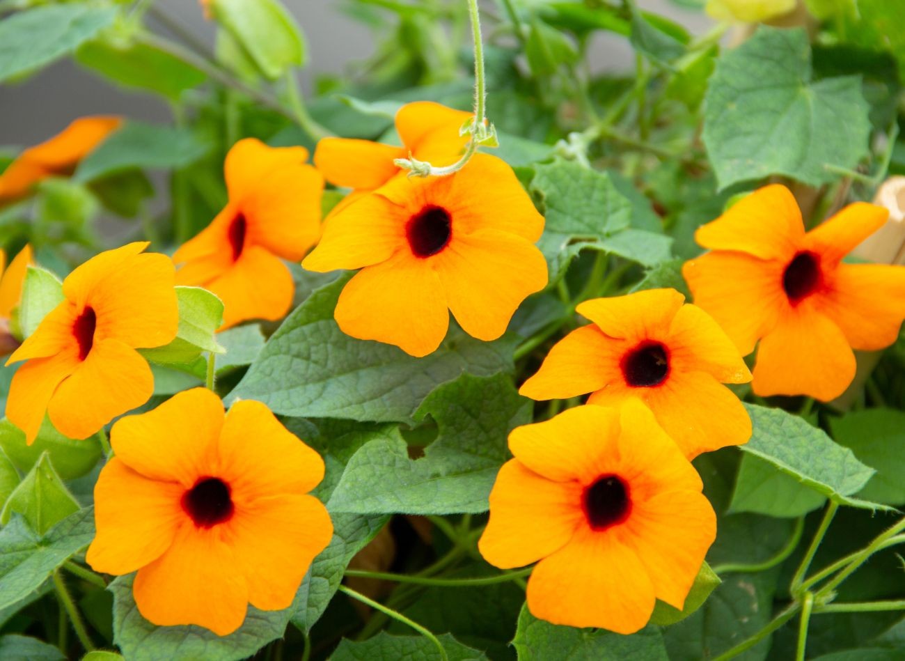 Tunbergia oskrzydlona dobrze rośnie zarówno przy podporach, jak i donicach. Fot.BasieB/CanvaPro