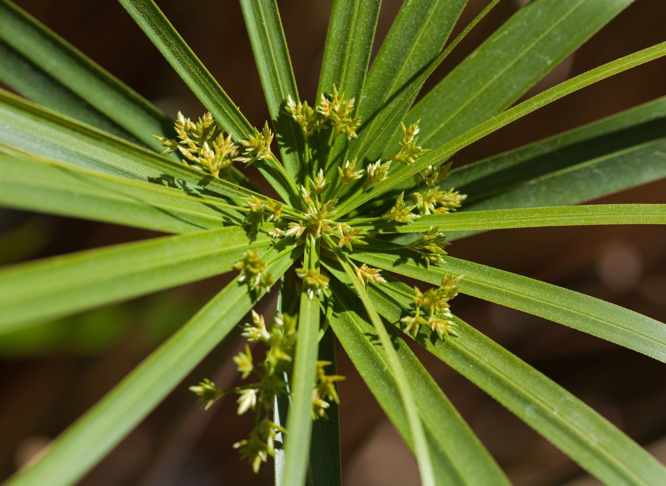 Niemniej jednak papirus wytwarza brązowe, kolczaste kwiatostany, które składają się z wielu drobnych, zielonych albo białych, delikatnych kwiatuszków. Wyrastają one na środku rośliny i często sięgają ponad liście, więc nie sposób ich przeoczyć. Z pewnością stanowią ciekawy kontrast dla długich, sztywnych liści.