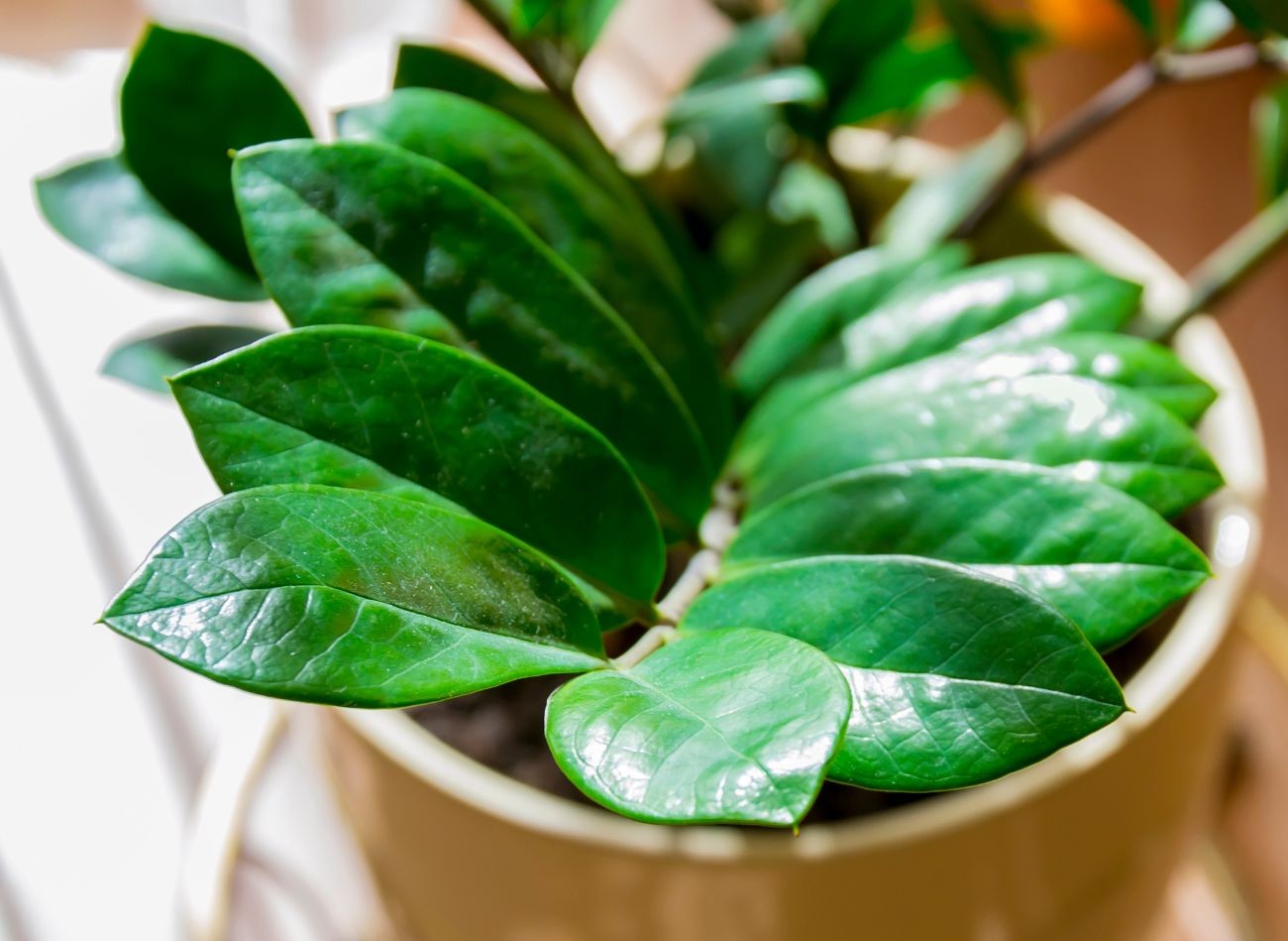 Zamiokulkas z natury charakteryzuje się wolnym tempem wzrostu, przez co dłużej może się wybudzać ze spoczynku. Fot. Dugwy/CanvaPro