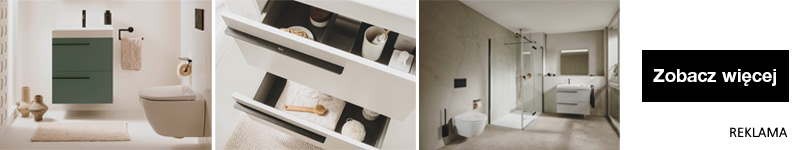 Kolejnym przykładem jest zestaw łazienkowy typu Unik z serii Ella od Roca, na który składa się umywalka oraz szafka. Niewielkie rozmiary, zredukowana głębokość (najmniejsza szafka ma zaledwie 250 mm), montaż baterii na umywalce oraz możliwość przymocowania całości do ściany sprawiają, że nie stracimy zbyt wiele cennego miejsca. Zyskamy natomiast kilka różnych funkcjonalności w jednym zestawie.