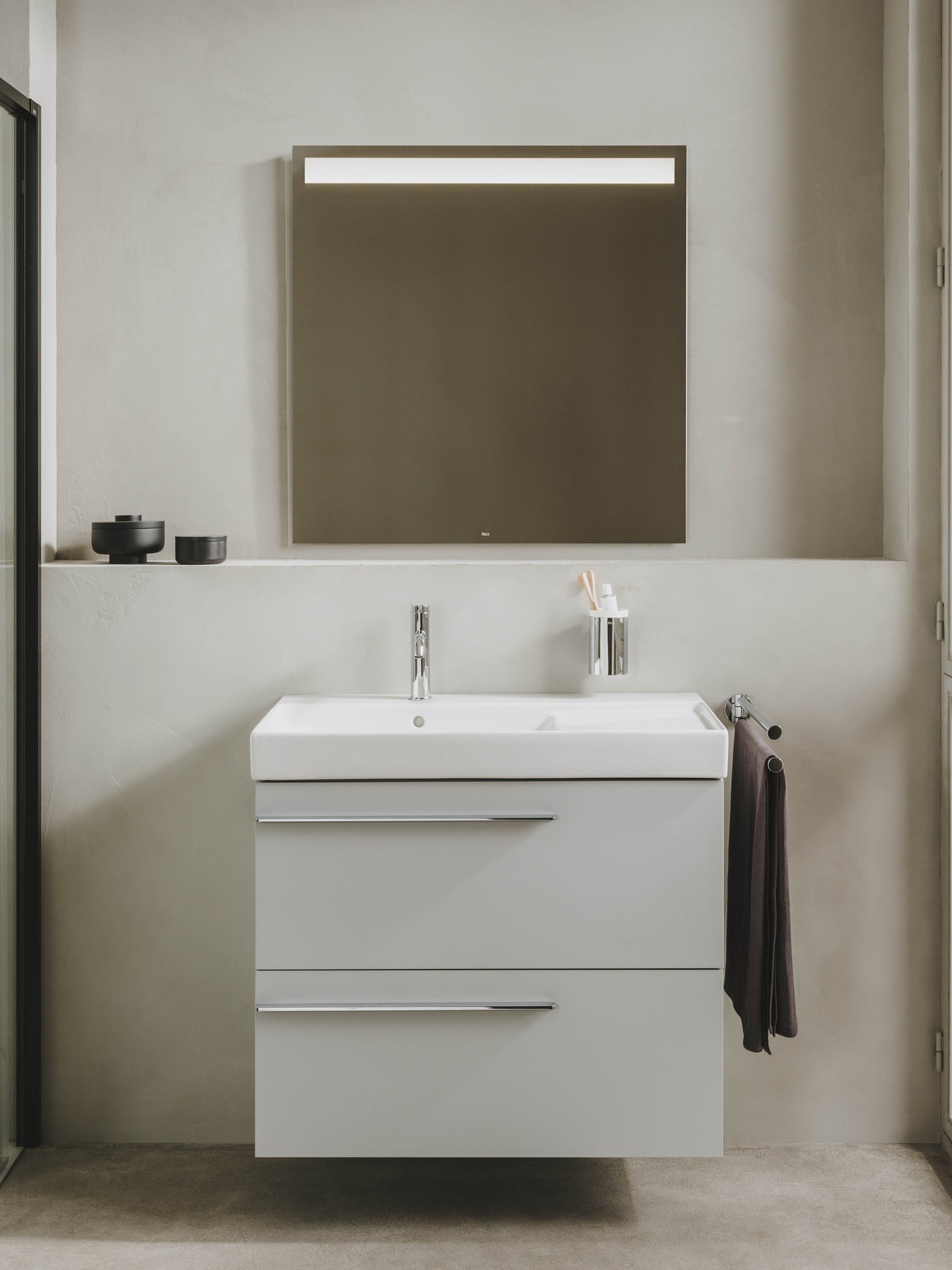 Podczas aranżacji małej łazienki warto stawiać na wielofunkcyjne urządzenia. Sprawa jest prosta: zamiast dwóch sprzętów, miejsce zajmie jeden, który pełni dwie lub więcej funkcji, np. zestaw Mini, w którym znajdziemy szafkę z lustrem nad umywalką.
