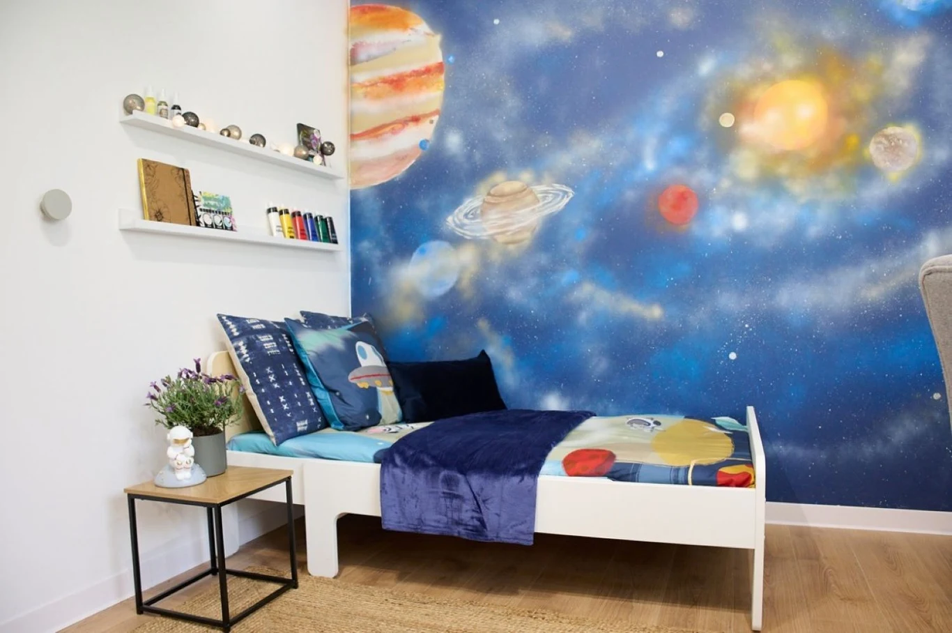 Użycie rozmaitych dodatków tematycznych w pokoju dziecięcym pozwala balansować na granicy rzeczywistości i wyobraźni małego użytkownika. To dzięki nim pokój może stać się stacją kosmiczną, przestrzenią malarską, bramą do świata komiksu czy boiskiem piłkarskim. Z kolei spersonalizowane dodatki sprawiają, że dziecko czuje się jeszcze ważniejsze w danej przestrzeni, pogłębia się jego poczucie tożsamości i autonomii, a przy tym pozwala wiele elementów połączyć ze sobą bardziej dowolnie.
