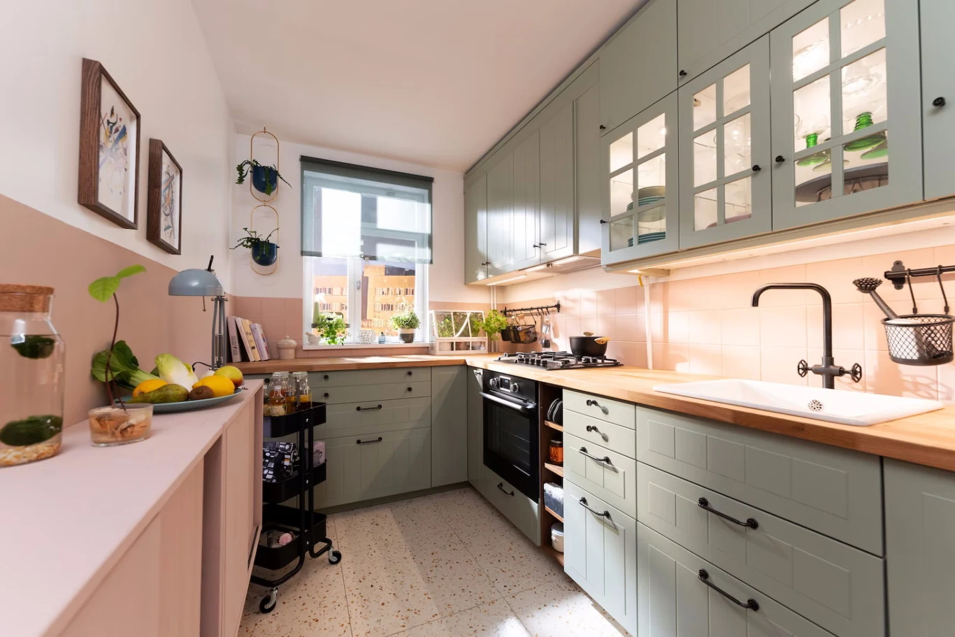 No właśnie, może... wymiana szafek na relingi? To niewielki koszt, a efekt kolosalny. Linki, pręty z haczykami oraz wiszące tkane kieszenie to świetny sposób na sprawienie, by nasza kuchnia prezentowała się bardziej nowocześnie. O ile oczywiście zależy nam na takim efekcie! Nie zapominajmy, że kierujemy się własnym gustem. Podczas dopasowywania kuchni do stylu życia można także pójść na skróty i przemalować płytki bądź szafki na nowy kolor. Taki, który aktualnie najbardziej nam odpowiada.