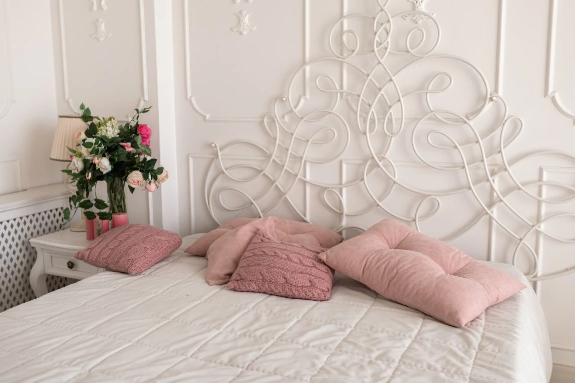 Łóżko z metalowym zagłówkiem