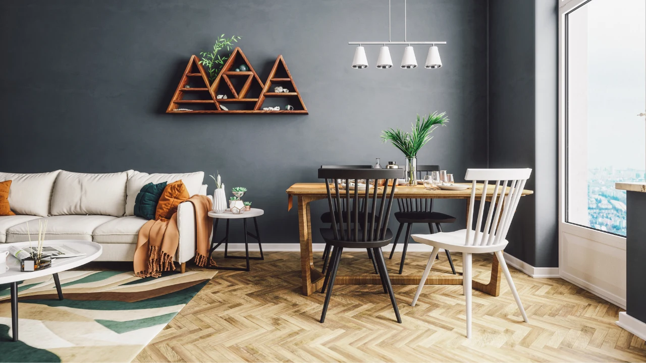 Wybierając kolor podłogi, miejmy na uwadze wygodę i funkcjonalność. Nie chcemy przecież codziennie odkurzać i myć naszej jodełki. Warto się też zastanowić czy chcemy skupić uwagę tylko na podłodze — wtedy kolor powinien być mocny, kontrastujący z resztą wnętrza. Istotne jest także, jaką szerokość desek wybierzemy. Przy małych pomieszczeniach postawmy jednak na jaśniejsze kolory i delikatne, wąskie deski. W ten sposób unikniemy poczucia przytłoczenia.