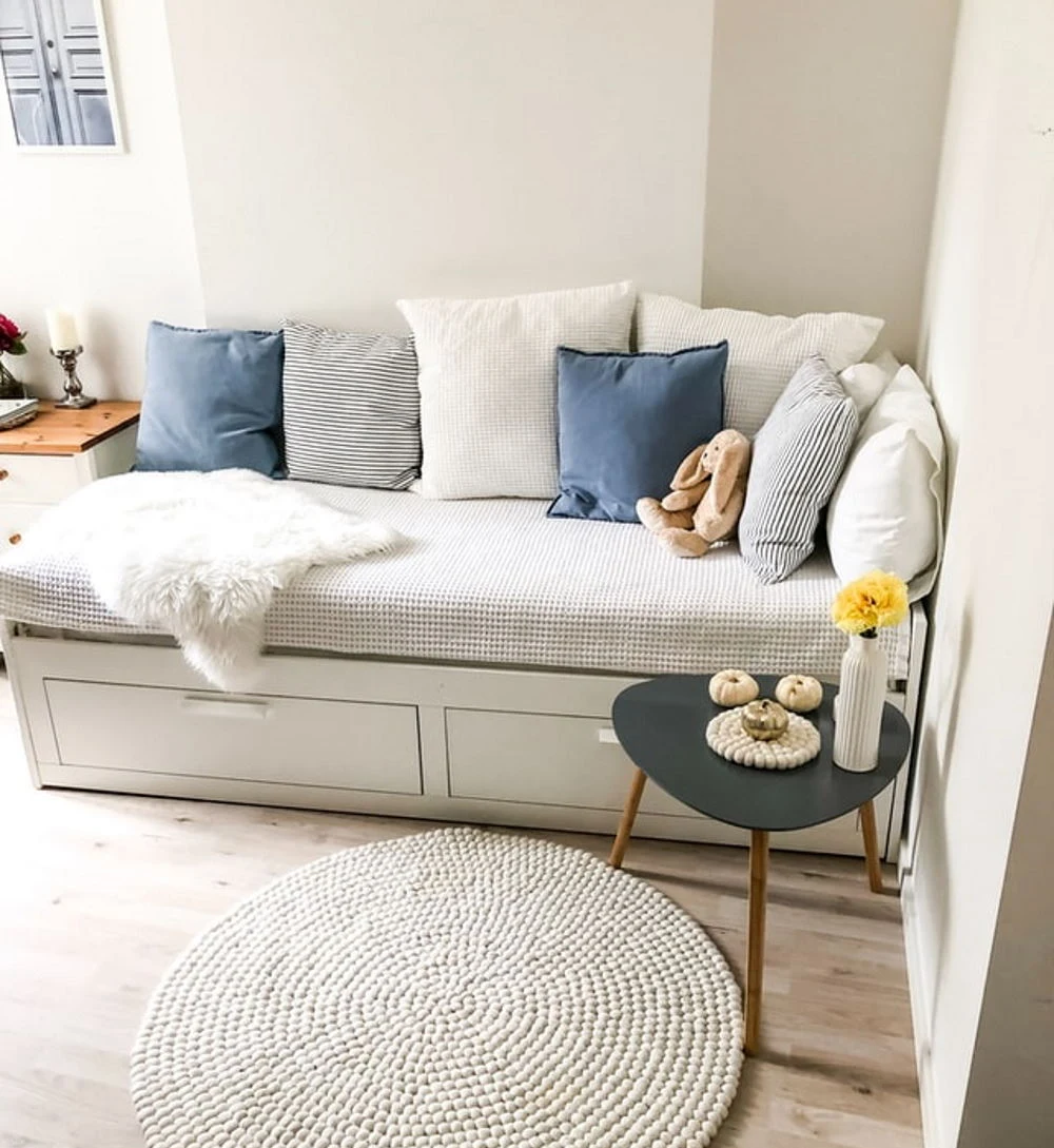 Miejsce do spania będzie najbardziej istotnym meblem w pokoju dla gości. Jeśli przestrzeń ta będzie wykorzystywana tylko w tym celu, możesz wstawić do niego łóżko dwuosobowe. W przypadku, gdy pokój gościnny na co dzień jest gabinetem lub pełni inną funkcję, lepiej sprawdzi się wygodna sofa z funkcją spania. Rozkładana kanapa lub narożnik pozwoli zaoszczędzić sporo miejsca, dlatego będzie najlepszym wyborem do niewielkiego pokoju gościnnego. Wybierając łóżko lub sofę dla gości postaw na praktyczne materiały, które nie tylko będą wygodne w użytkowaniu, ale też praktyczne w utrzymaniu czystości.