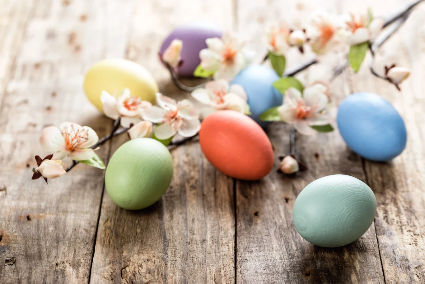 Bukiety i aranżacje ze świeżych kwiatów to „kropka nad i” każdej wielkanocnej kompozycji. Teraz jednak poza typowo wiosennymi kwiatami: tulipanami, żonkilami, hiacyntami, wawrzynkami, krokusami, zawilcami warto sięgać po bardziej minimalistyczne w formie gałęzie krzewów czy drzew: forsycji, jabłoni, wiśni, bazie.