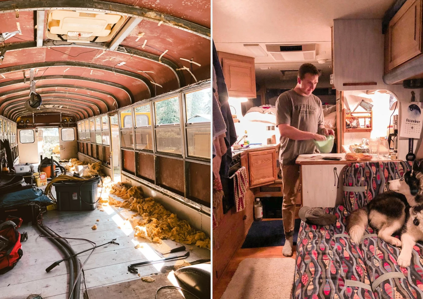 Para wspólnie zaczęła jednak oglądać filmiki i snuć – wyobrażali sobie, jak będzie wyglądał ich autobus oraz jakie miejsca nim odwiedzą. Od marzeń szybko zaczęli przechodzić do czynów. Nowy styl życia zaczęli planować w 2016 roku. Oszczędzali, a następnie sprzedali dom. W 2019 roku kupili autobus szkolny za 5500 dolarów i rozpoczęli gruntowny remont. Pandemia sprawiła, że musieli wstrzymać się z planami podróżniczymi, ale prężnie wykorzystali ten czas do przystosowania wnętrza do warunków mieszkalnych. Łącznie kosztowało ich to 65 000 dolarów. Po remoncie zdeterminowana para rozpoczęła nowy okres życia w autobusie, wprowadzając się z trzema zwierzętami (dwoma kotami i psem).