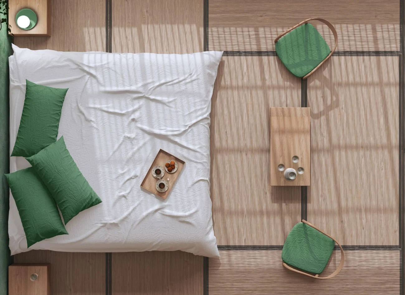 Dodatki w stylu japandi mogą wyróżniać się kolorystyką, lecz barwy powinny być zgaszone, rozmyte. Jeśli to możliwe, dodatki również powinny być wykonane z naturalnych materiałów, by pasowały do reszty wyposażenia. Fantastycznym dodatkiem będzie na przykład bambusowa lampa czy skandynawska plecionka. Wiklinowe doniczki czy kosze, kamienne rzeźby, marmurowe blaty, dekoracyjne poduszki – to kolejne elementy, które będą idealnie wyglądać w pomieszczeniu urządzonym w stylu japandi.