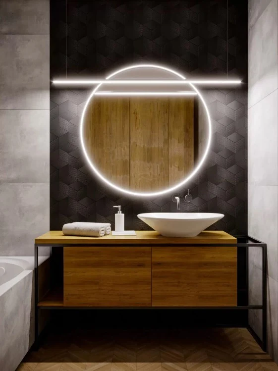 Style loftowy i industrialny świetnie odnajdują się w małej łazience. Płytki drewnopodobne można zestawić z ceramiką imitującą beton i kamień. Powstanie wówczas interesująca kompilacja ciepła i chłodu. Tradycji i nowoczesności.