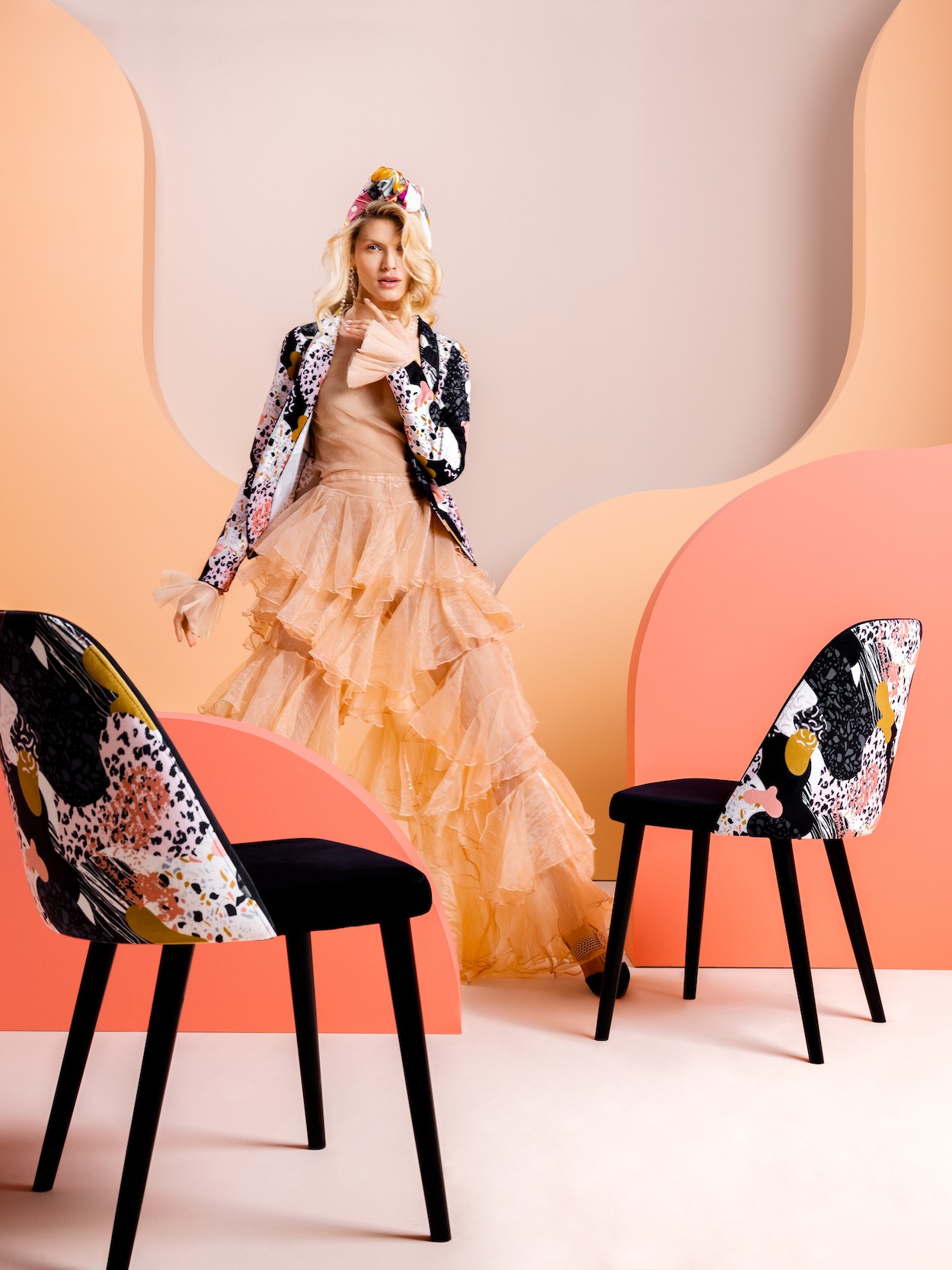 Abstrakcja to nie tylko kolory, ale także kształty. Doskonałym tego dowodem jest krzesło Aka, którego opływowy, a zarazem niebanalny kształt doskonale koresponduje z artystycznym ujęciem barw na princie. Podobną zależność możemy zauważyć również w przypadku fotelu Garita oraz pufa i fotelu Emilly. Wysokie i wygodne oparcie, miękkie siedzisko, a wszystko to urozmaicone dekoracyjnymi guzikami i stopkami z drewna. Oto kwintesencja komfortu w najlepszym stylu, o czym przekonuje wspomniany wcześniej fotel Emilly.
