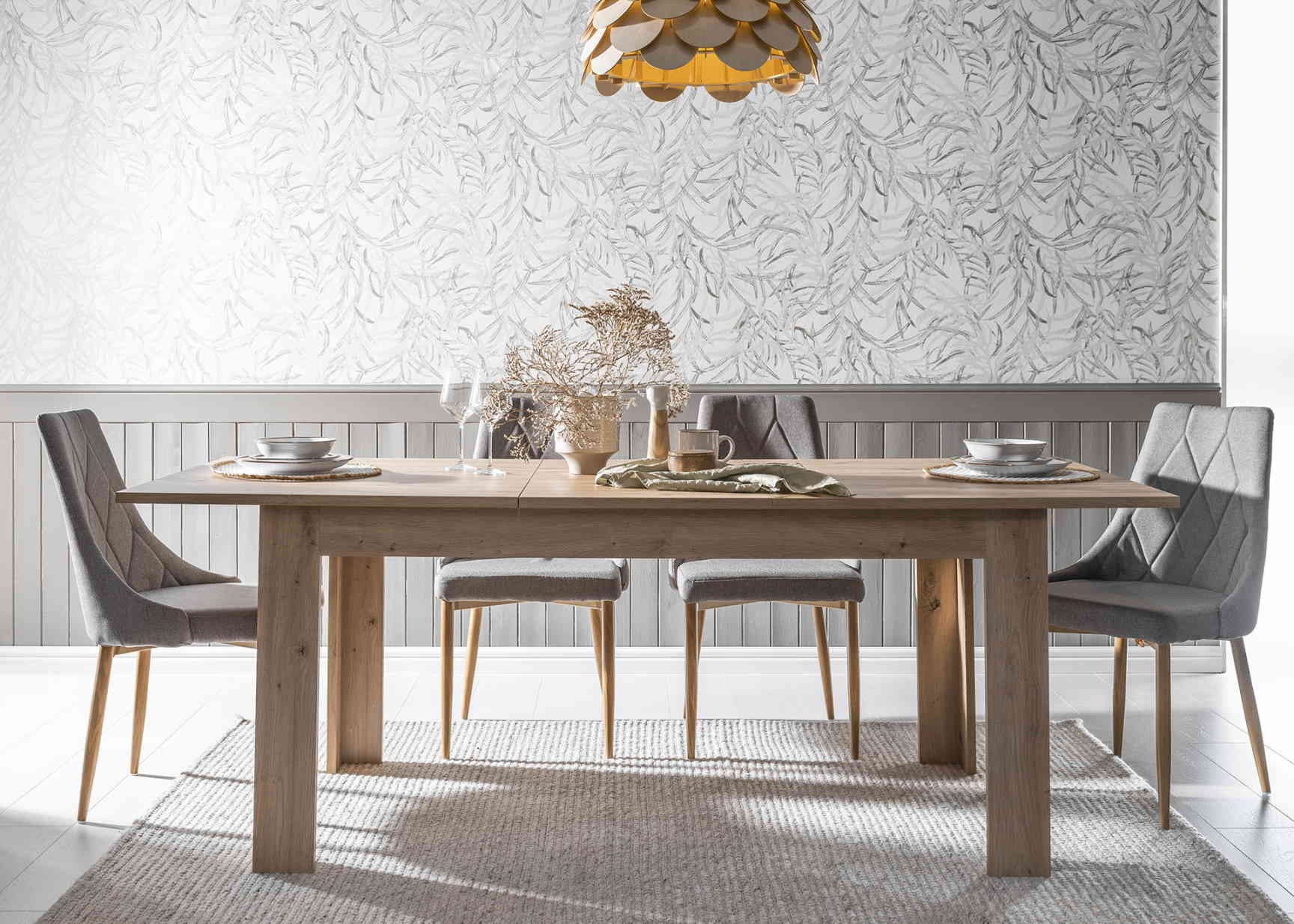 Stoły i krzesła w skandynawskiej jadalni to zwykle modele z drewna lub przynajmniej w kolorze jasnego, naturalnego materiału. Alternatywą dla drewnianych mebli do jadalni są także modele w kolorze białym. Skandynawski klimat wyrazisz nie tylko kolorem, ale także designem mebli do jadalni. Idealne krzesła do jadalni scandi to proste modele z drewnianym oparciem, pozbawione podłokietników. Szukasz czegoś bardziej komfortowego? Równie dobrze sprawdzą się tu tapicerowane krzesła w jasnym stonowanym odcieniu – szare lub beżowe.