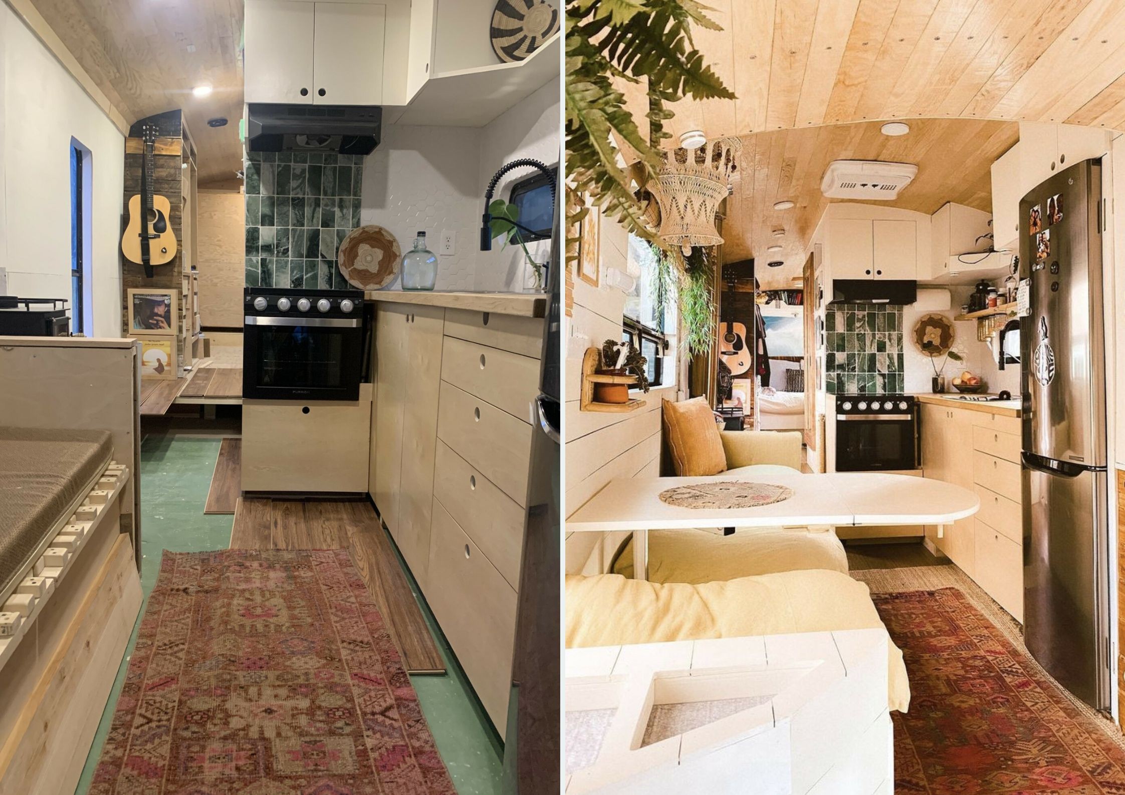 Proces zmian obejmował: podniesienie dachu, wycięcie wnętrza, cięcie i spawanie nowych podpór oraz wymiana blachy. Te prace zajęły im ok. 2,5 miesiąca i dopiero wtedy mogli skupić się na aranżacji wnętrza. Środek przypomina kamper w wersji bardzo wygodniej i funkcjonalnej. Para przyznaje, że życie w drodze pozwala im zaoszczędzać miesięcznie ponad 3 000 dolarów.