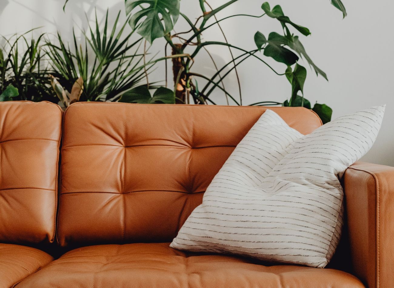 Skórzana kanapa w ciepłym, koniakowym odcieniu także po części wpisuje się w kanony stylu kolonialnego. Fot. Karola G/CanvaPro