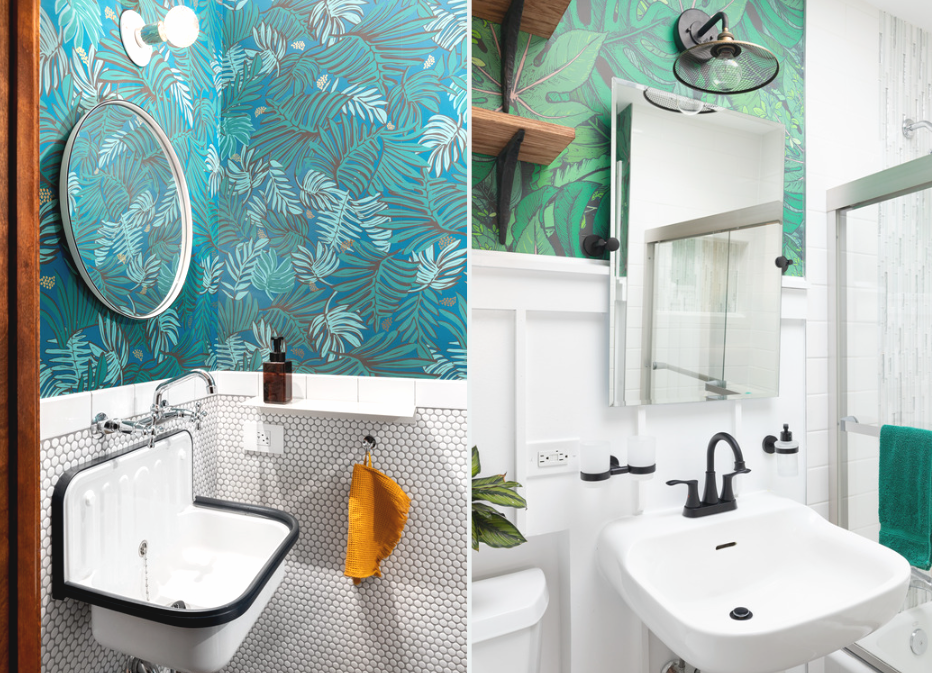 Do trendów łazienkowych w 2024 roku należą też tapety znane już z aranżacji pokojów łazienkowych. Tym razem warto jednak wybrać wzory florystyczne. Roślinność pod każdą postacią zarówno motywów dekoracyjnych, jak i żywych roślin świetnie podkreśli ekologiczne aspekty aranżacji.