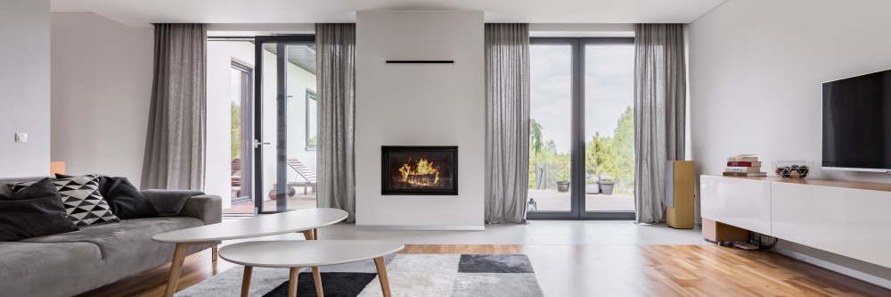 Ciężkie tkaniny są typowe dla bardziej rustykalnych, surowych aranżacji salonu. Okna ozdobione w stylu skandynawskim mogą być osłonięte zasłonami upiętymi chwostami lub sznurami. Jest to doskonałe wyeksponowanie funkcjonalności, typowej dla tego typu wystrojów. Dodatkowo nadaje surowy, ciekawy klimat wnętrza.