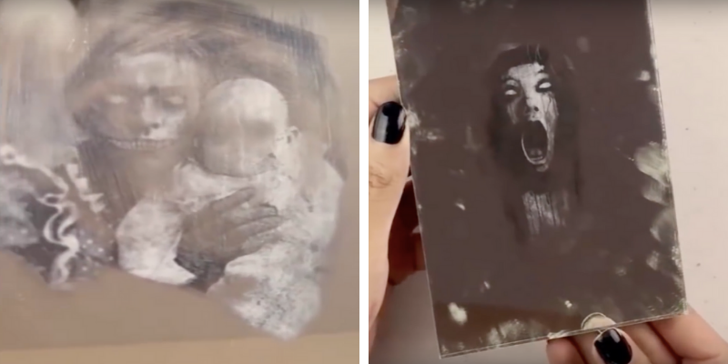 Tą dekoracją na 100% zaskoczysz i przestraszysz swoich gości. Potrzebne ci będą: stare lustro - może być wielkości kartki A5, a nawet mniejsze, papier ścierny, straszne czarno-białe zdjęcie, nożyczki i taśma. Warstwę odbijającą lustra zetrzyj w miejscu, w którym chcesz umieścić fotografię.