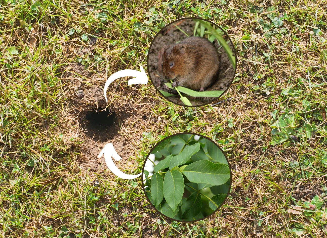 Skutki żerowania nornic w ogrodzie