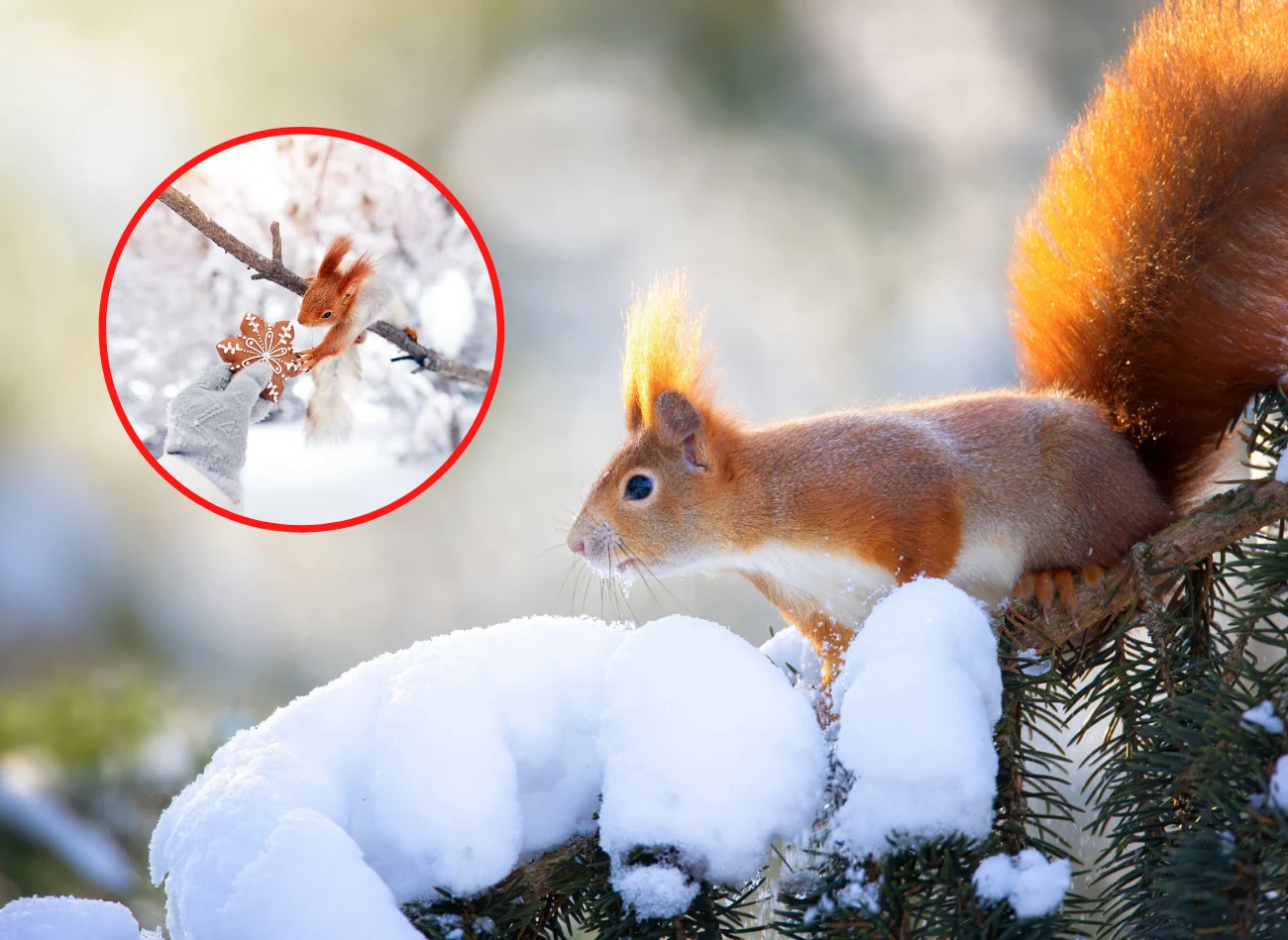 Najlepszym pożywieniem dla wiewiórek jest mieszanka orzechów laskowych i włoskich, nasiona słonecznika, siekana marchew, sucharki bezcukrowe i dużo świeżej wody.