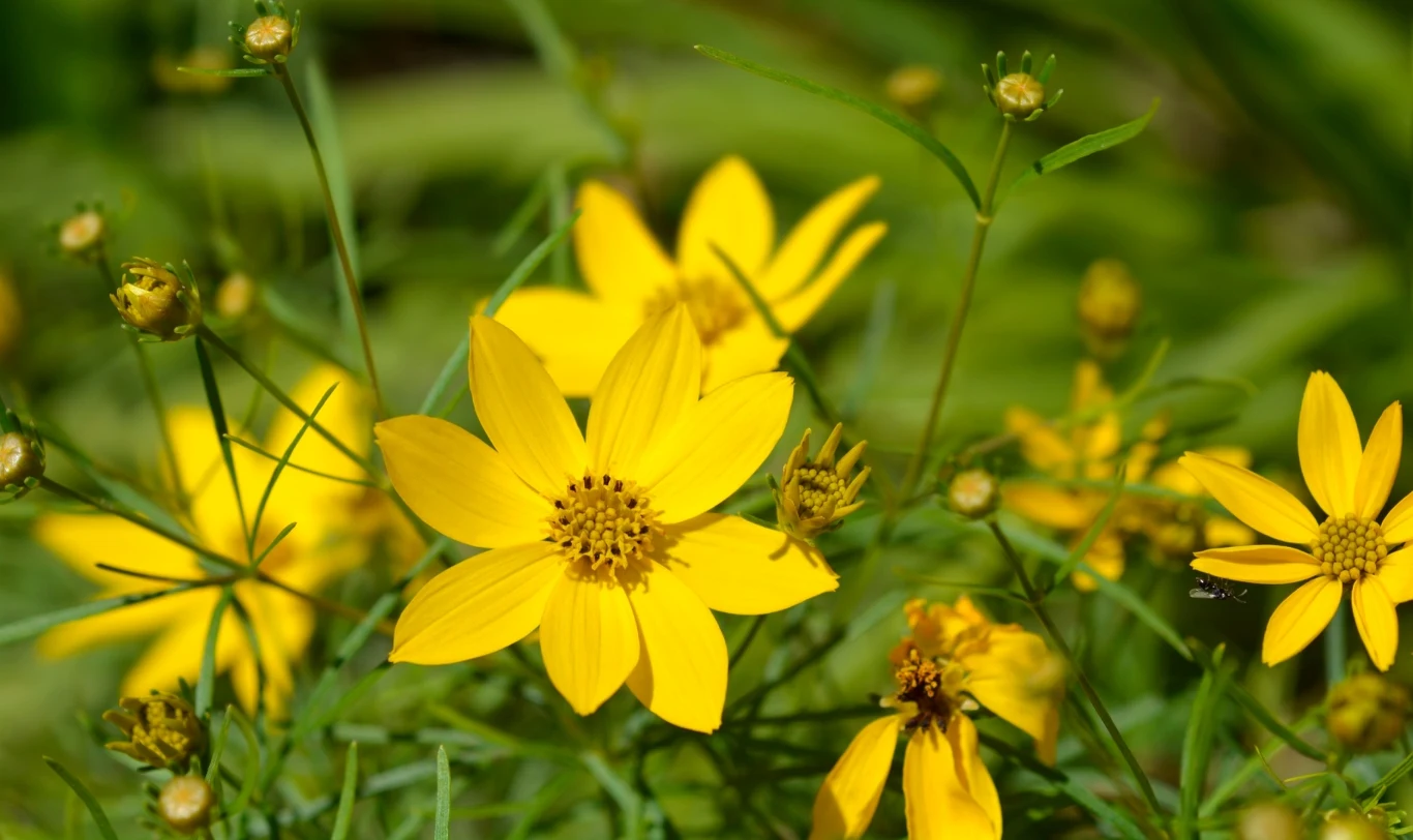 Coreopsis verticillata to wieloletnia bylina formująca zwarte, krzaczaste kępy. Mimo iż rozrasta się ona dzięki podziemnym rozłogom, nie jest szczególnie ekspansywna. Hodowcy lubią tę roślinę za bogactwo gwiaździstych kwiatów oraz ich żywą, bardzo atrakcyjną kolorystykę. Płatki u podstawowej odmiany mają intensywnie żółty kolor.