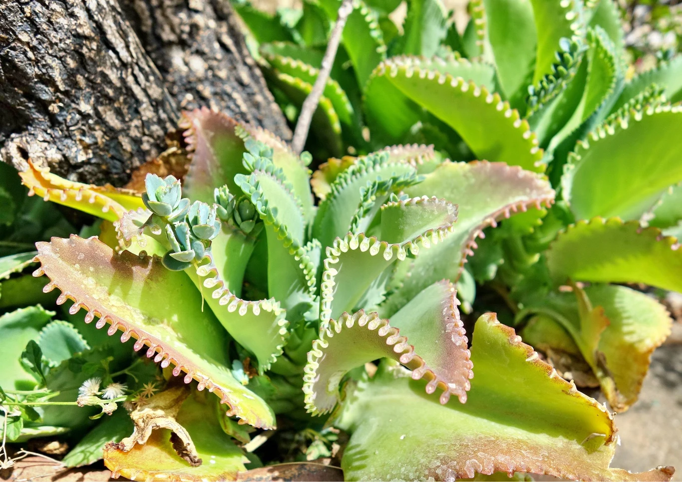Bryophyllum pinnatum ma zdolność do tworzenia rozmnóżek. Zawiązują się one po oderwaniu liścia od łodygi i umieszczeniu go na wilgotnym podłożu. Rozmnóżki powstają we wcięciach pomiędzy brzeżnymi ząbkami liści. Mają one postać maleńkich, szybko ukorzeniających się listków. Roślinę tę można ukorzeniać również z łodyg.