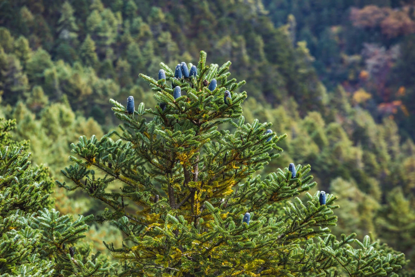 Jodła koreańska szybko dojrzewa — szyszki zawiązują się już u kilkuletnich sadzonek.