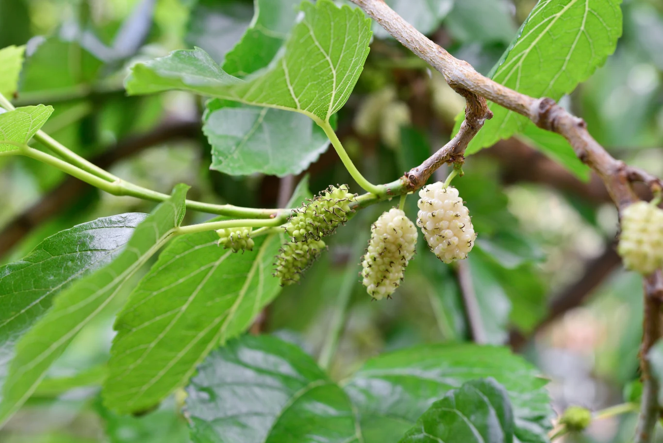 Drobne kwiaty morwy niestety nie mają większych walorów dekoracyjnych.